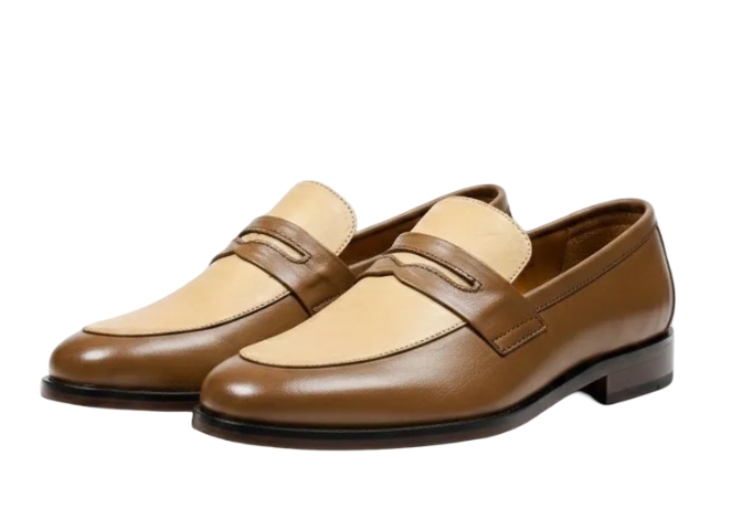 Handcrafted for the discerning man, these Two-Tone Loafers are not simply worn—they're inherited. Designed in contrasting shades of premium full-grain leather, every detail reflects patience, precision, and prestige. With each step, the natural leather sole adapts to your stride—aging not just gracefully, but memorably. These are shoes for those who don't follow trends—they set standards.